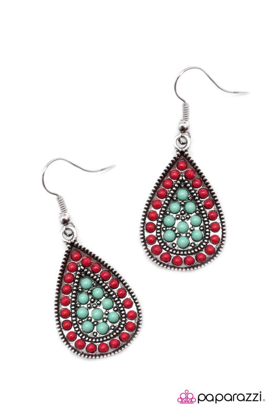 Paparazzi β₯ Tenacious Treasure - Red β₯ Earrings