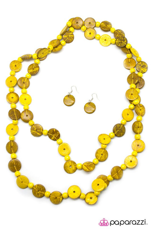 Paparazzi β₯ Woodnt You Like to Know - Yellow β₯ Necklace