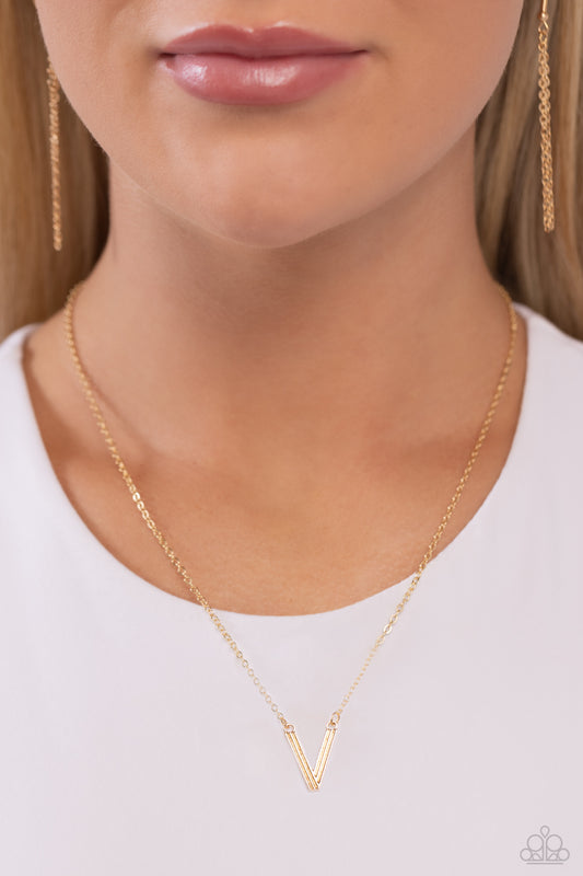 Paparazzi β₯ Leave Your Initials - Gold - V β₯ Necklace