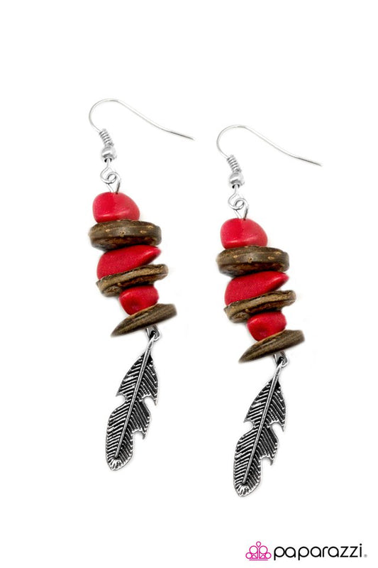 Paparazzi β₯ Shake A Tail Feather - Red β₯ Earrings
