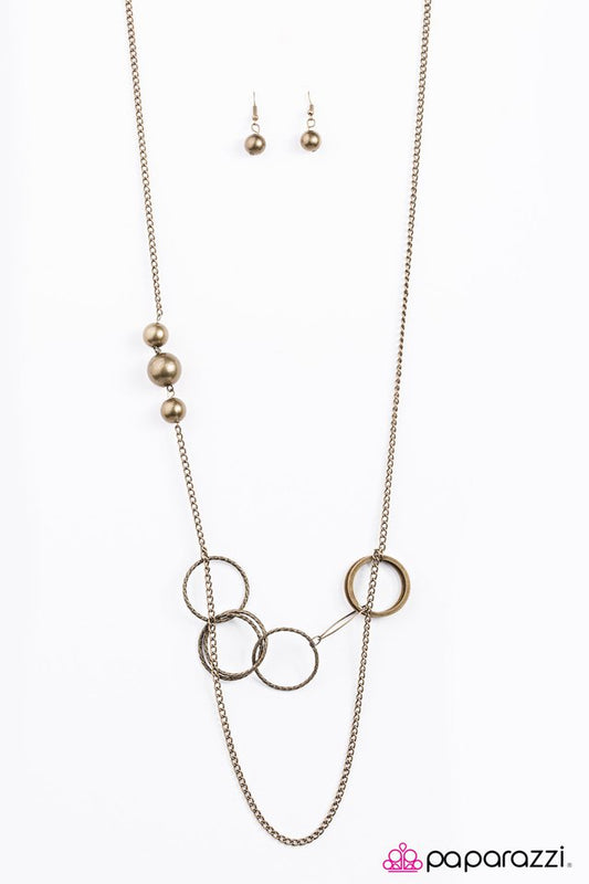 Paparazzi ♥ Round Em Up - Brass ♥ Necklace
