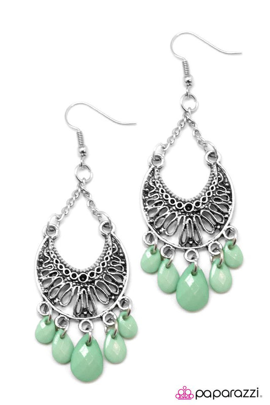 Paparazzi β₯ As The TEARS Go By - Green β₯ Earrings