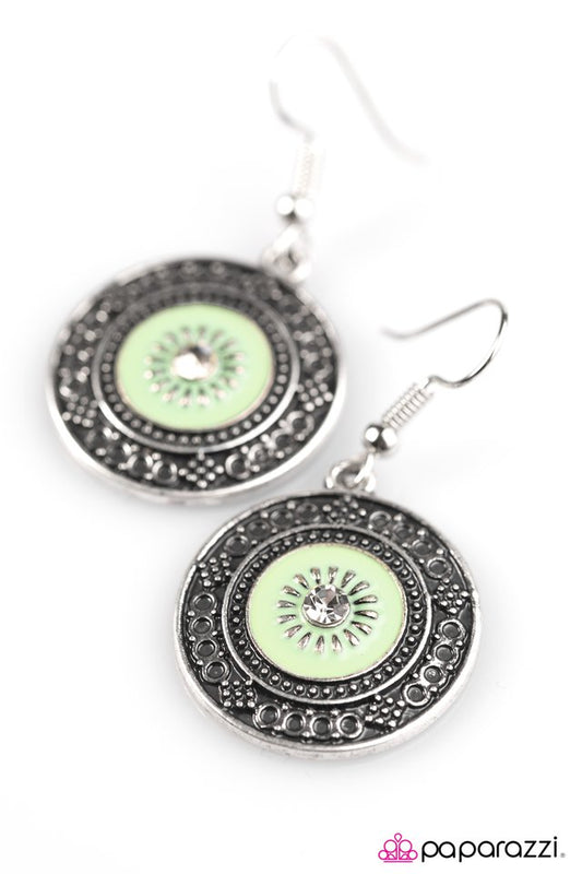 Paparazzi β₯ Candid Kansas - Green β₯ Earrings