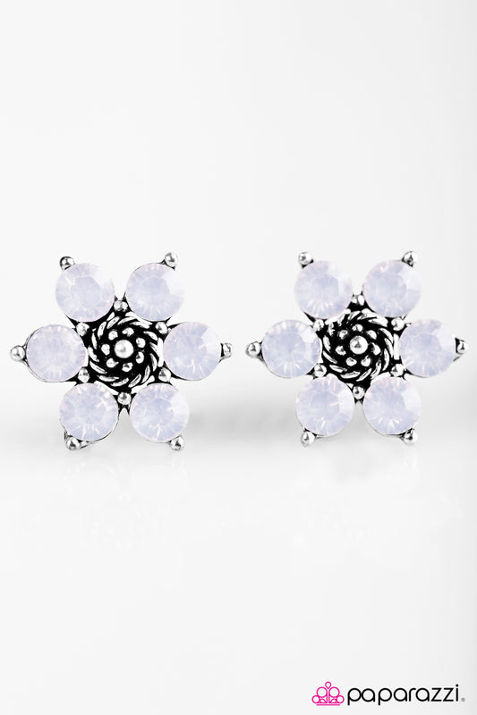 Paparazzi β₯ Love Me DEW - White β₯ Post Earrings