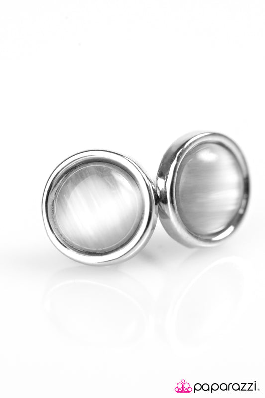 Paparazzi β₯ Man In The Moon - White β₯ Post Earrings