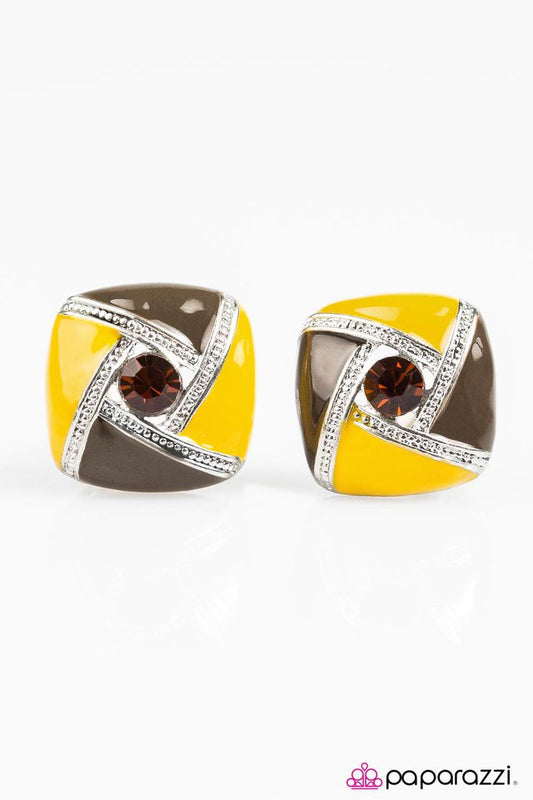Paparazzi ♥ Modern Materials - Yellow ♥ Earrings