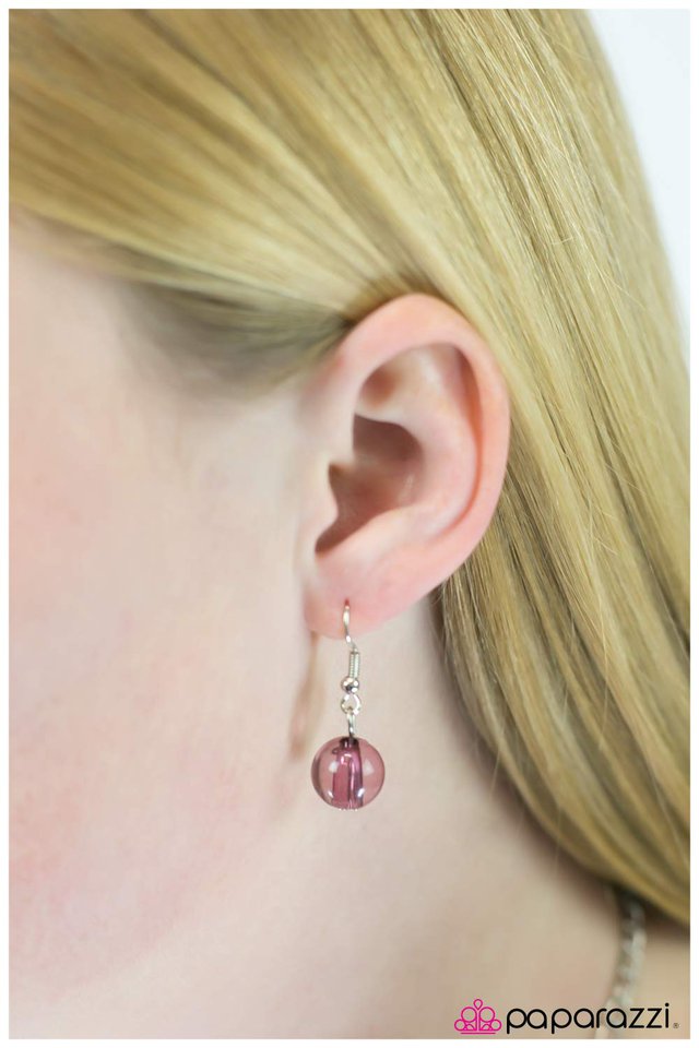 A large, flat pink bead is the anchoring piece for a cluster of blue and pink beads to swing freely. The translucent beads in the cluster feature reflective, faceted edges that create a stunning light-catching display. Features an adjustable clasp closure. Sold as one individual necklace. Includes one pair of matching earrings.