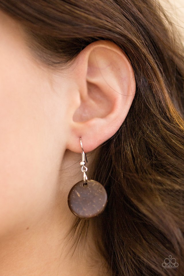 Brushed in a distressed finish, wooden discs link into three summery rows below the collar. Round yellow beads are knotted between the wooden accents, adding colorful accents to the seasonal palette. Features a button loop closure. Sold as one individual necklace. Includes one pair of matching earrings.