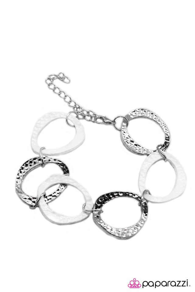 Silver and white ovals circle around the wrist. Finished in a perfectly hammered surface, the twisting silver and white ovals combine in a whimsical style. Features an adjustable clasp closure. Sold as one individual bracelet.