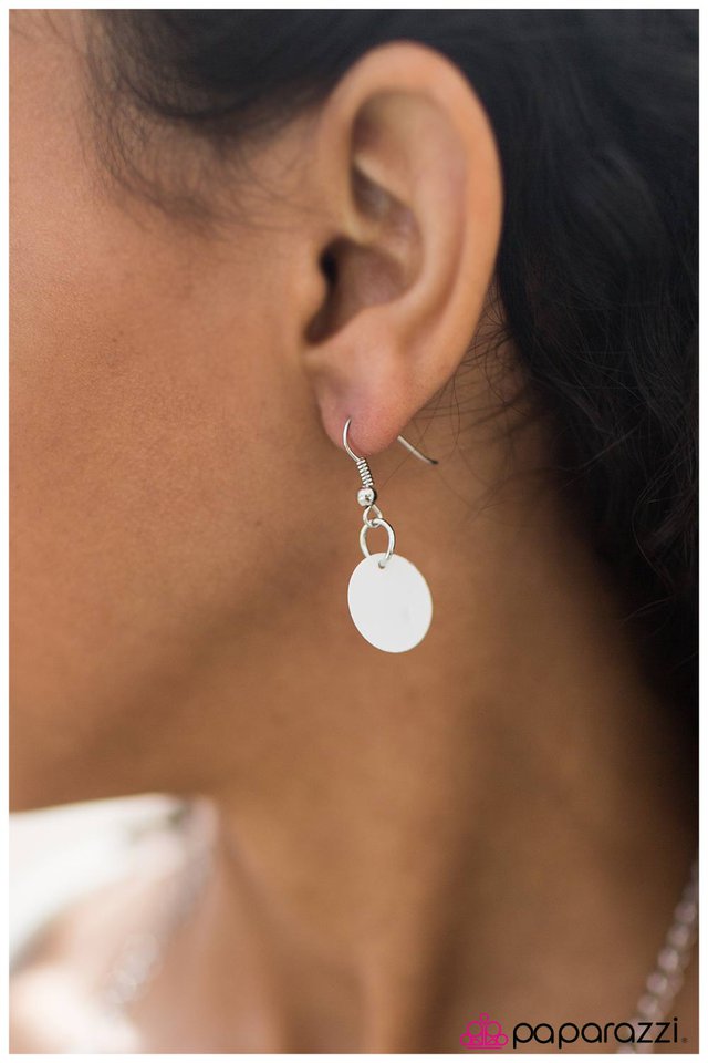 White and silver discs trickle along a simple silver chain for a casual display. Features an adjustable clasp closure. A lobster clasp hangs from the bottom of the design to allow a name badge or other item to be attached. Features an adjustable clasp closure. Sold as one individual lanyard. Includes one pair of matching earrings.