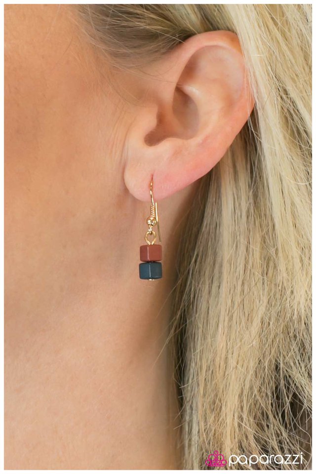 Stacked cubes brushed in the earthy shades of Oak Buff, Reflecting Pond, Marsala, and Dried Herb cascade down sleek gold chains. Complemented with stacks of gold cubes, the slim chain and small cube combination creates a dainty yet urban design. Features an adjustable clasp closure. Sold as one individual necklace. Includes one pair of matching earrings.