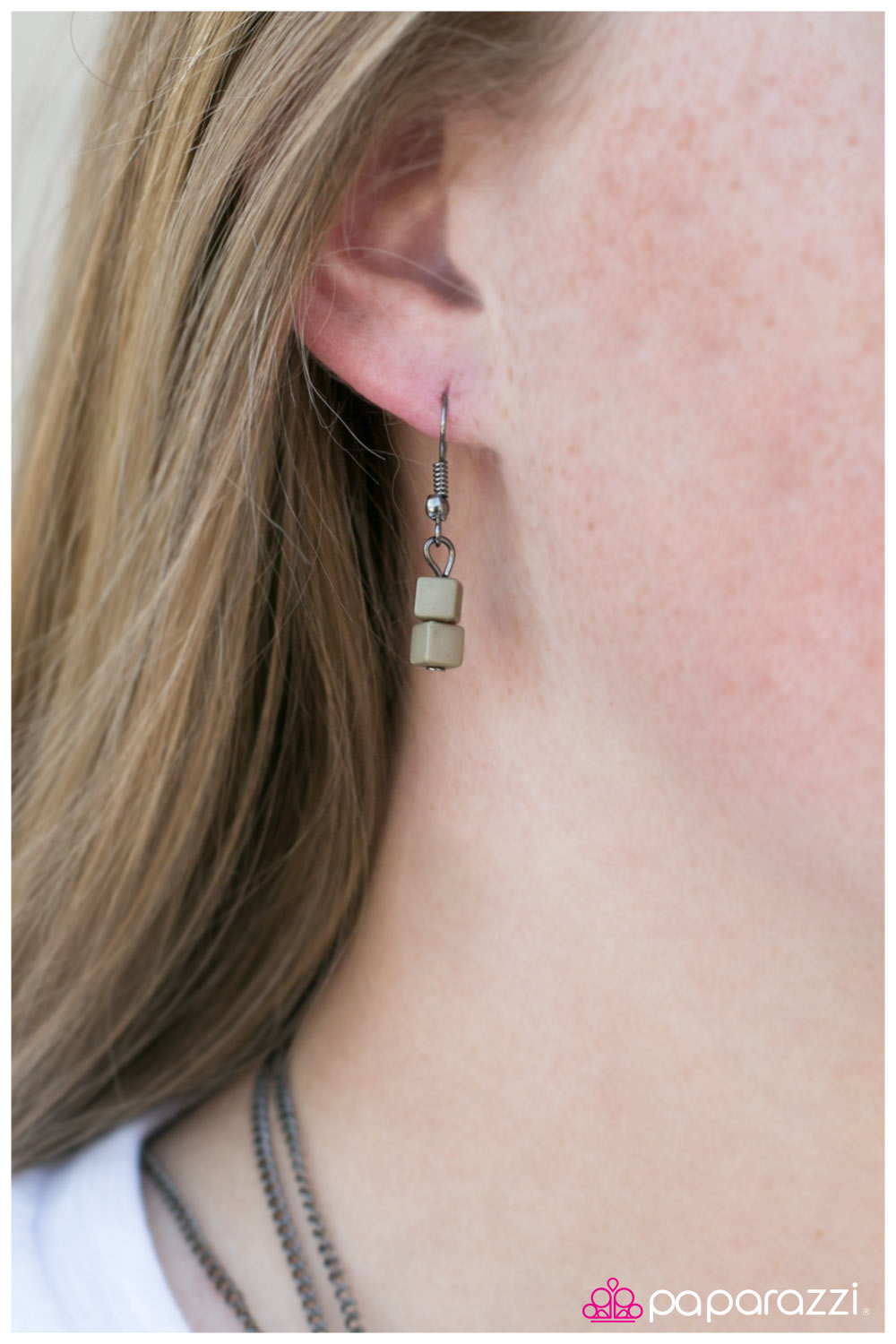 Stacked cubes brushed in the earthy shade of Dried Herb cascade down sleek gunmetal chains. Complemented with stacks of gunmetal cubes, the slim chain and small cube combination creates a dainty yet urban design. Features an adjustable clasp closure.