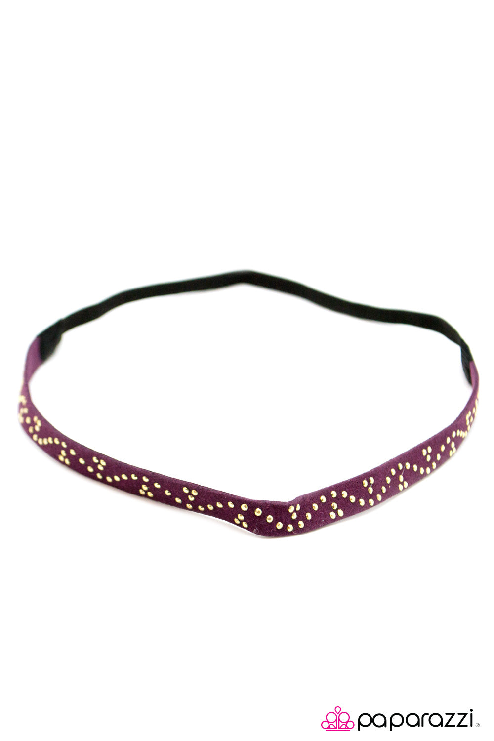 A strip of plum suede is decorated with tiny silver studs arranged in an eye-catching pattern, evoking an indigenous vibe.