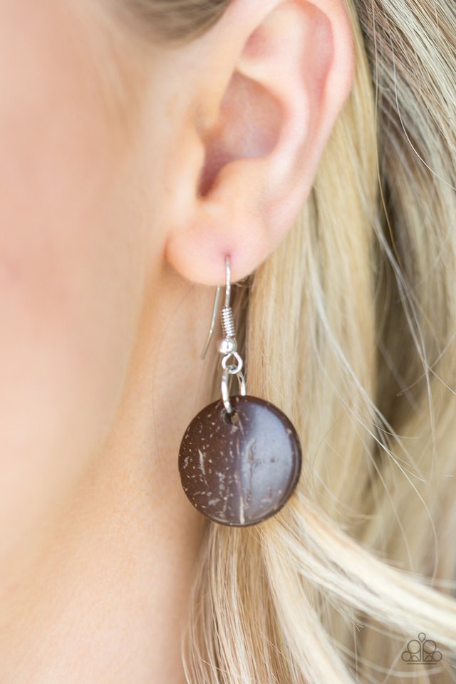 Featuring round, faceted, and distressed finishes, mismatched brown wooden beads are threaded along shiny brown cording. Vivacious orange wooden beads trickle between the earthy accents, adding a colorful finish to the summery palette. Features an adjustable sliding knot closure. Sold as one individual necklace. Includes one pair of matching earrings.