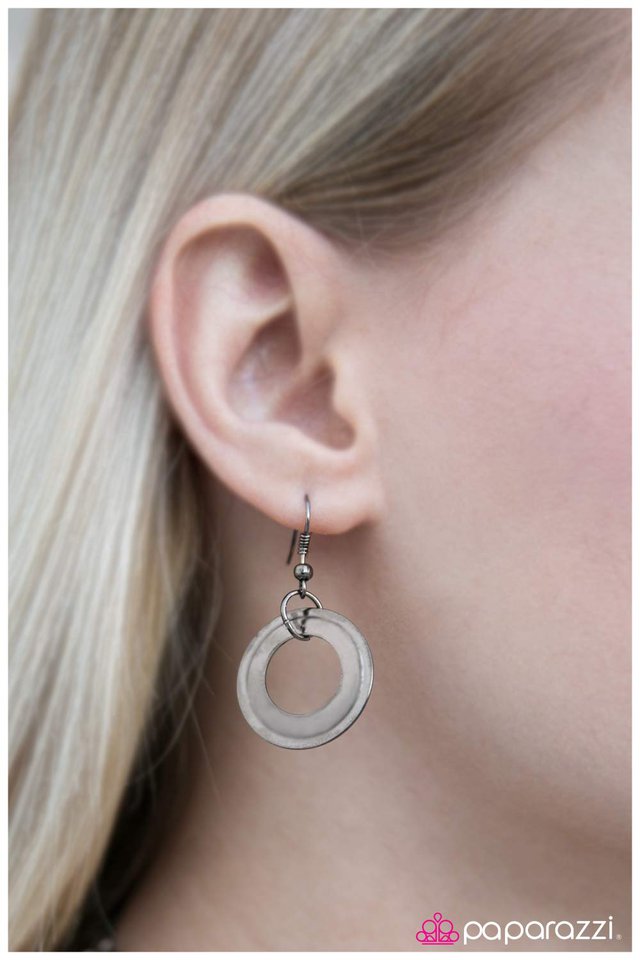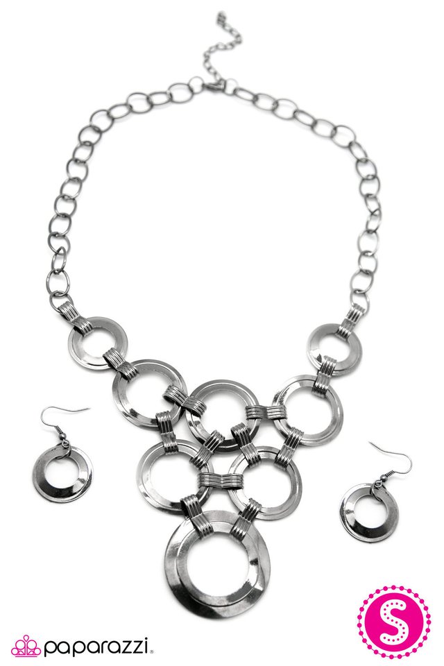 Waved gunmetal circles are outlined in texture and linked together for a gorgeous statement piece along a gunmetal chain. Features an adjustable clasp closure. Sold as one individual necklace. Includes one pair of matching earrings.