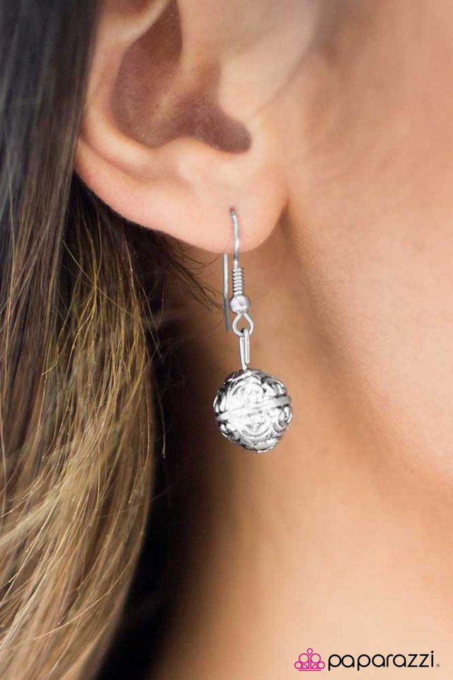 A collection of silver beads dangle from a large round black sphere, creating a cascading silver chandelier. The chunky and dainty bead combination creates a whimsical design. Features an adjustable clasp closure. Sold as one individual necklace. Includes one pair of matching earrings.