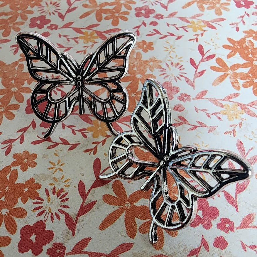 Featuring high-sheen detailing, an intricate silver butterfly flutters at the ear for a whimsical centerpiece. Earring attaches to a standard post fitting.