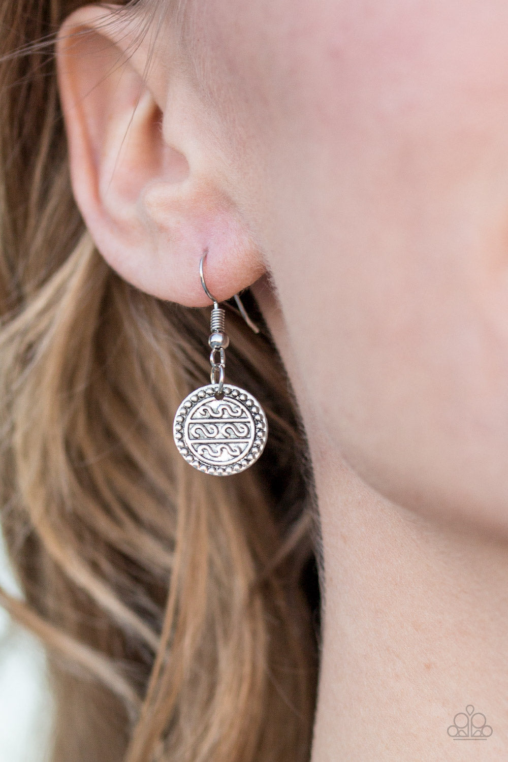Brushed in an antiqued shimmer, coin-like discs swing from the bottom of ornate silver plates, creating a fierce fringe below the collar. Faceted silver beads and yellow beads give way to the shiny fringe, while matching beads are pressed into the airy tribal plates for a colorful finish. Features an adjustable clasp closure.