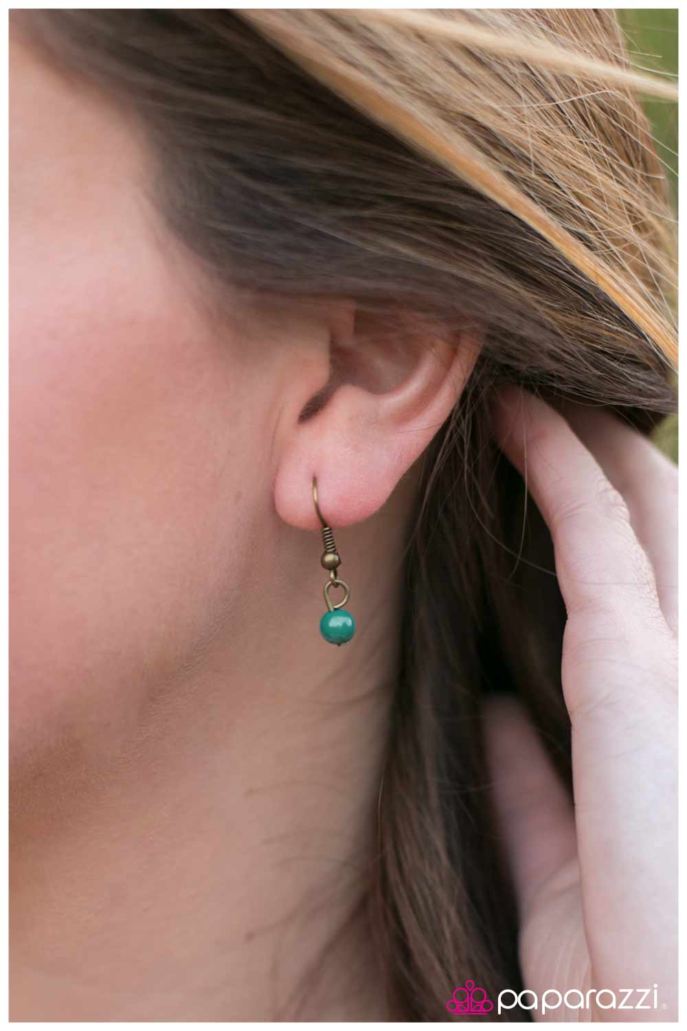 A string of brown, turquoise, and brass beads fall into an earthy and enchanting necklace. A brass charm filled with a forest of trees hangs from an additional brass chain, adding beautiful layering to the design. Features an adjustable clasp closure.