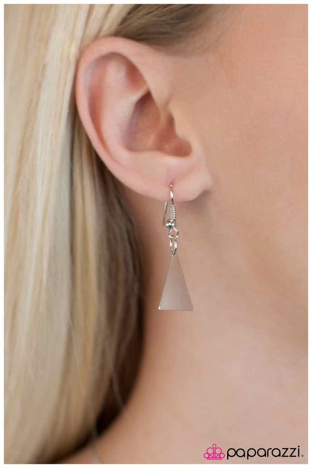 A silver triangle pendant lined with a row of stone beads in the earthy Pantone® of the year, Marsala, hangs at the end of a long delicate silver chain. Features an adjustable clasp closure. Sold as one individual necklace. Includes one pair of matching earrings.