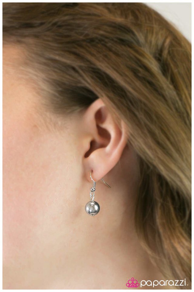 A classic silver chain is decorated by sleek silver accents and two purple discs. Three strands of silver chain drape across the bottom of the design, adding elegance to the piece. Sold as one individual necklace. Includes one pair of matching earrings.