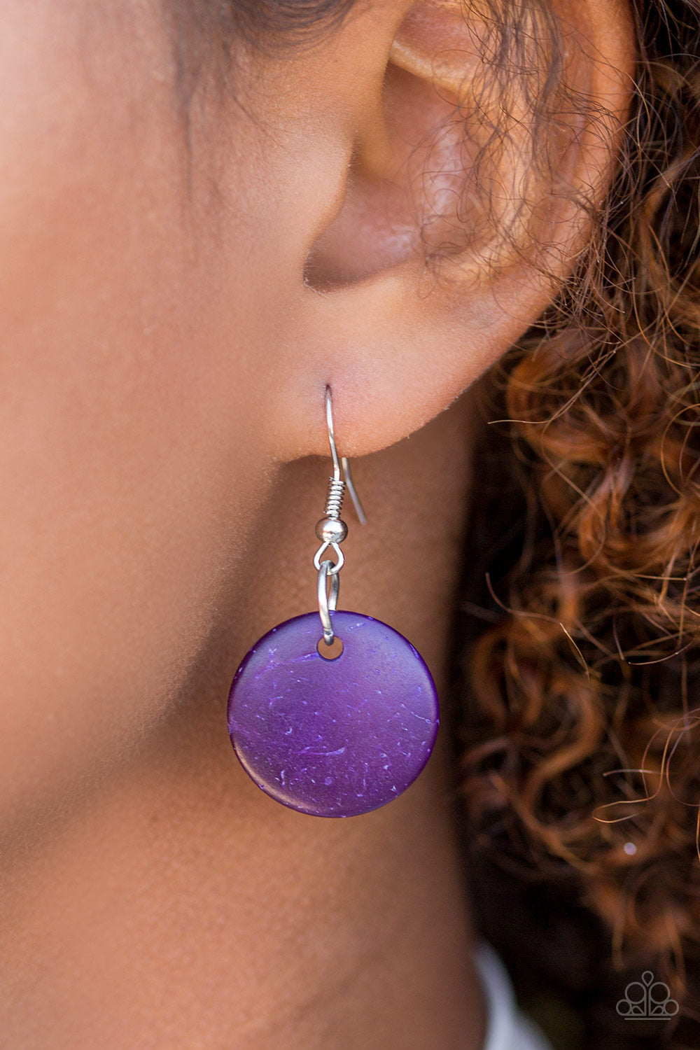 Shiny wooden discs brushed in brightly colored finishes trickle along shiny brown cording, creating clustered layers below the collar. Features a button-loop closure.