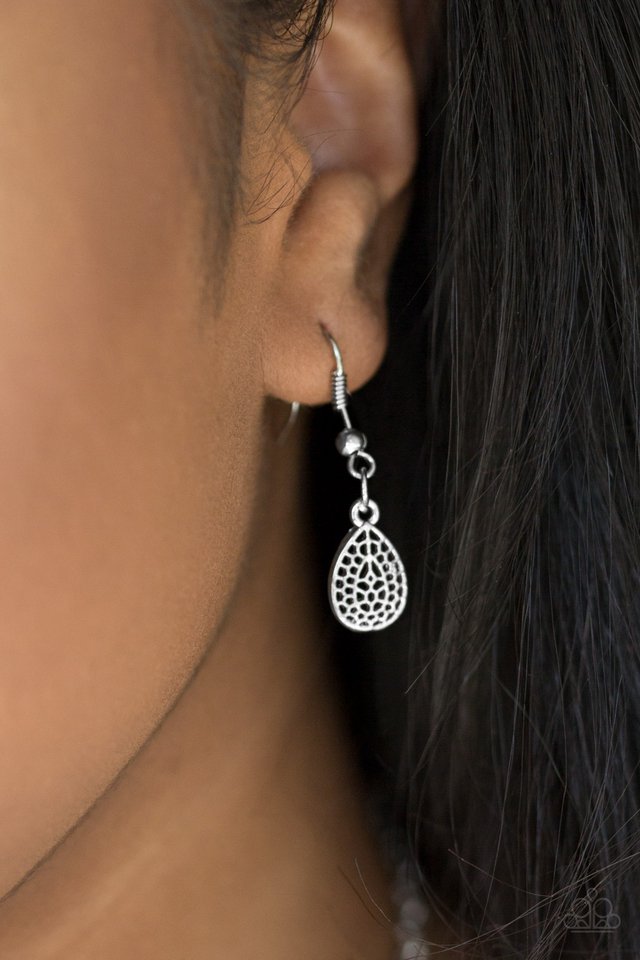 Filigree filled silver teardrops link below the collar in a seasonal fashion. Pink teardrop beads are pressed into the airy frames, adding a splash of color to the tribal inspired palette. Features an adjustable clasp closure. Sold as one individual necklace. Includes one pair of matching earrings.