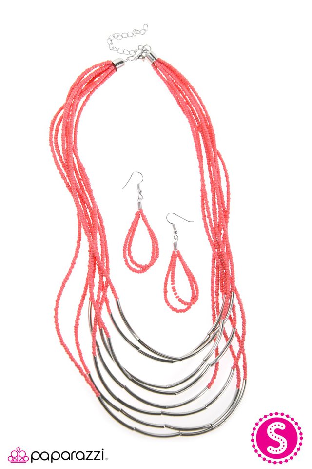 Countless coral seed beads brushed in a brilliant shimmer drape into a gorgeous layered cascade. Cylindrical silver beads are threaded through the bottom of the strands creating shiny accent pieces. Features an adjustable clasp closure. Sold as one individual necklace. Includes one pair of matching earrings.