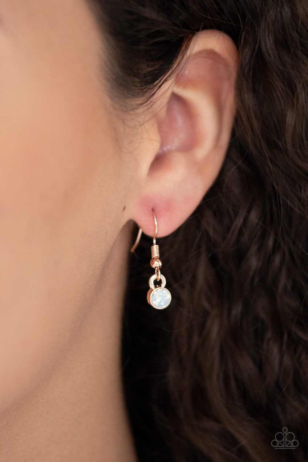 Dotted with a dainty opalescent rhinestone, a glistening rose gold frame spins with a mandala-like detail for a whimsical look. A lobster clasp hangs from the bottom of the design to allow a name badge or other item to be attached. Features an adjustable clasp closure.