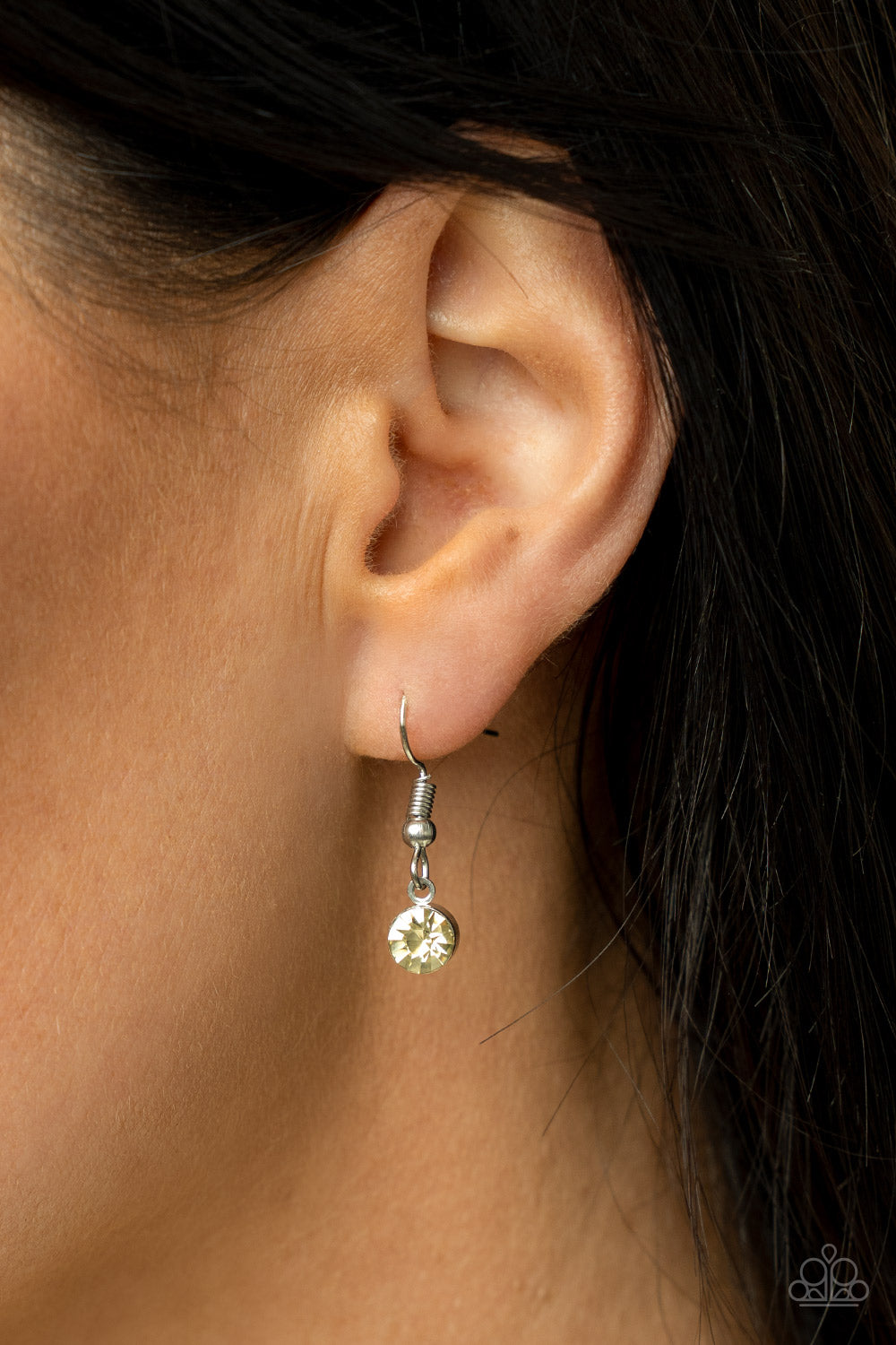 Encased in sleek silver fittings, elegant cut golden topaz rhinestones delicately connect below the collar. An oversized golden topaz rhinestone adorns to the middle of the glittery strand, creating a sparkly centerpiece. Features an adjustable clasp closure.