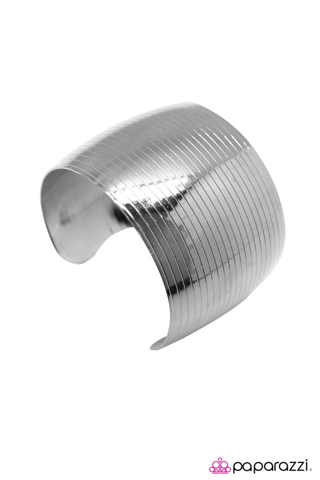 A chunky gunmetal cuff is lined with skinny grooved textures. Brushed in a high-sheen, the reflective surface catches the light creating a glassy like surface. Sold as one individual cuff.