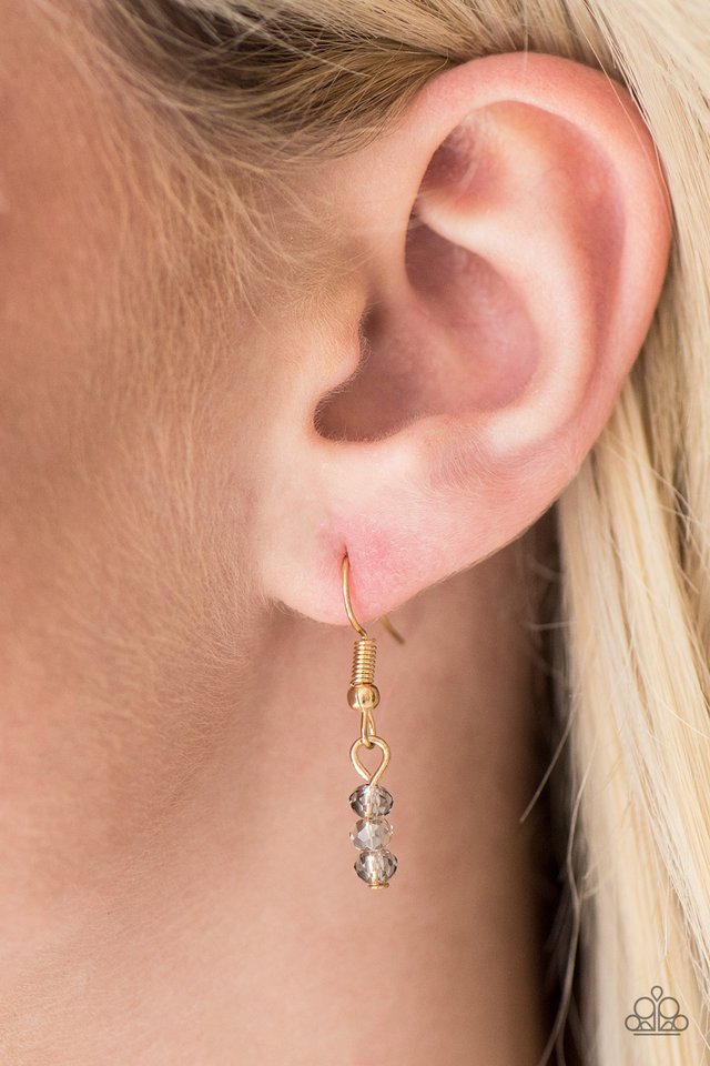 Threaded along metallic rods, stacks of smoky beading trickle from the bottom of a gold chain. The glittery accents trickle between trestles of gold chains, creating a fierce fringe below the collar. Features an adjustable clasp closure. Sold as one individual necklace. Includes one pair of matching earrings.