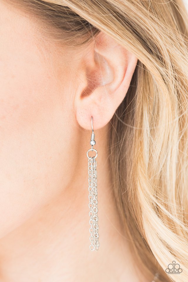 A glittery purple rhinestone is pressed into an ornate silver frame. Infused with an elongated silver chain, the inspired pendant gives way to a shimmery silver tassel for a whimsical finish. Features an adjustable clasp closure. Sold as one individual necklace. Includes one pair of matching earrings.