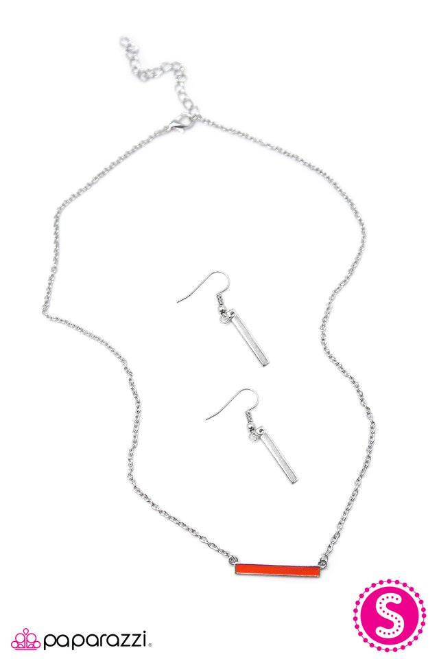 A sleek silver rectangle hangs horizontally below the collar for casual display. The minimalistic pendant is glazed in a red finish for a simple splash of color. Features an adjustable clasp closure. Sold as one individual necklace. Includes one pair of matching earrings.