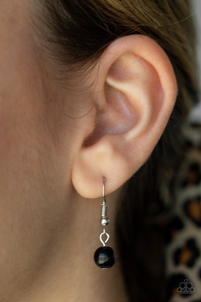 Alternating with glassy white rhinestones, pearly white and black beaded tassels swing from the bottom of a shimmery silver chain below the collar for a refined flair. Features an adjustable clasp closure. Sold as one individual necklace. Includes one pair of matching earrings.