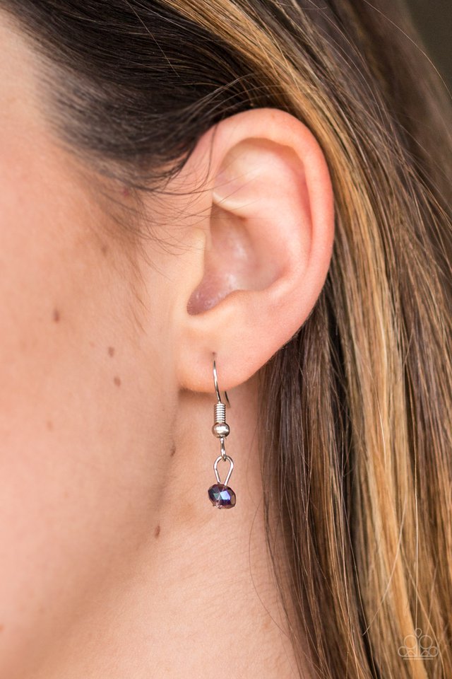 Brushed in an iridescent finish, purple crystal-like beads trickle along a shimmery silver chain. A plain silver chain hangs above the glittery beads for a refined layered finish. Features an adjustable clasp closure. Sold as one individual necklace. Includes one pair of matching earrings.