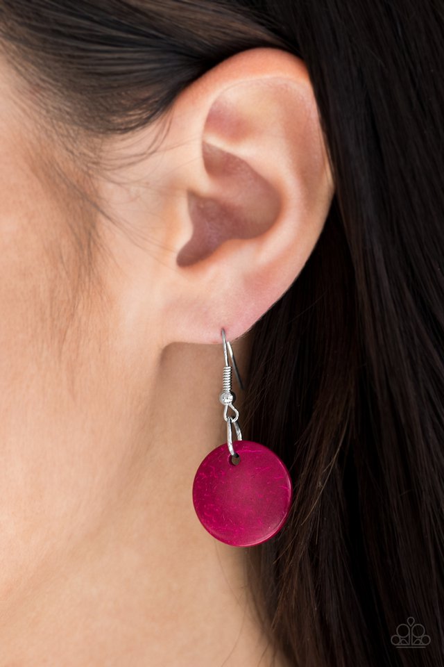 Brushed in a vivacious pink finish, two bold wooden beads give way to summery layers. Brushed in a distressed finish, dainty wooden discs swing from the bottom of the layers for a flirty finish. Sold as one individual necklace. Includes one pair of matching earrings.