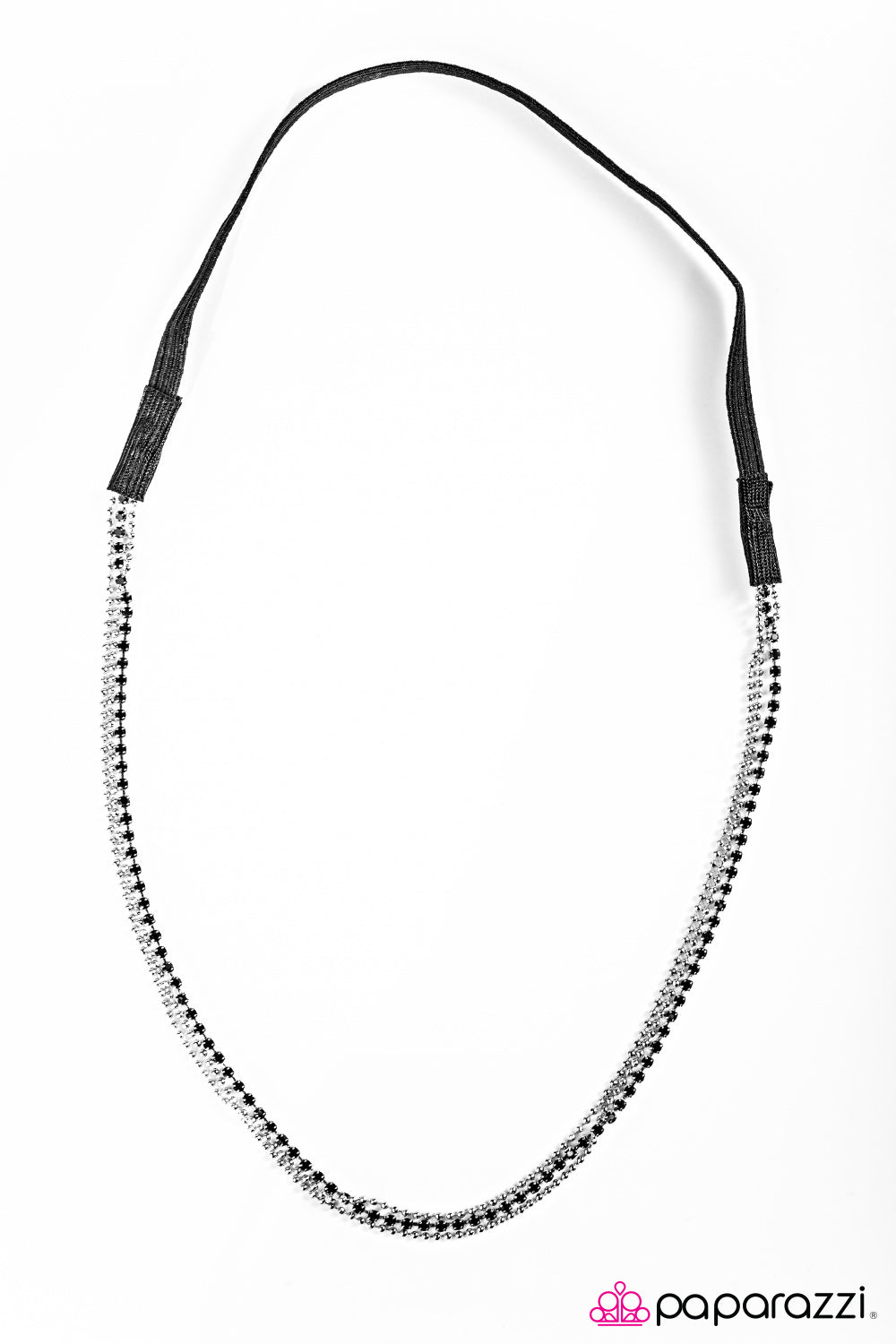 A row of dainty black rhinestones is paired with two shimmering rows of silver ball chain. The silver on silver compilation creates an undeniable sparkle.