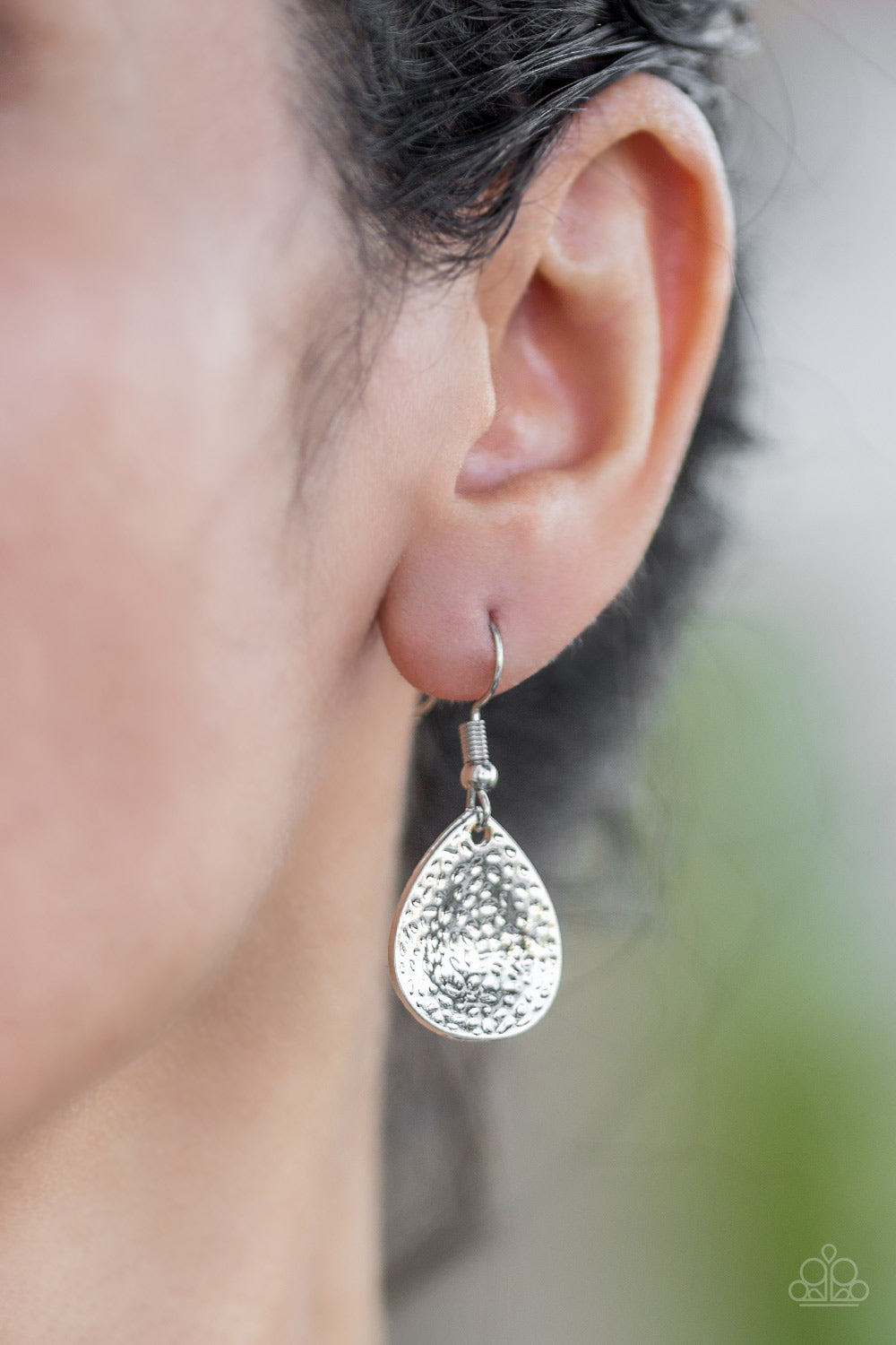 Delicately hammered in light-catching shimmer, copper, brass, and silver teardrops drip from the bottom of a glistening silver chain, creating a bold fringe below the collar. Features an adjustable clasp closure.