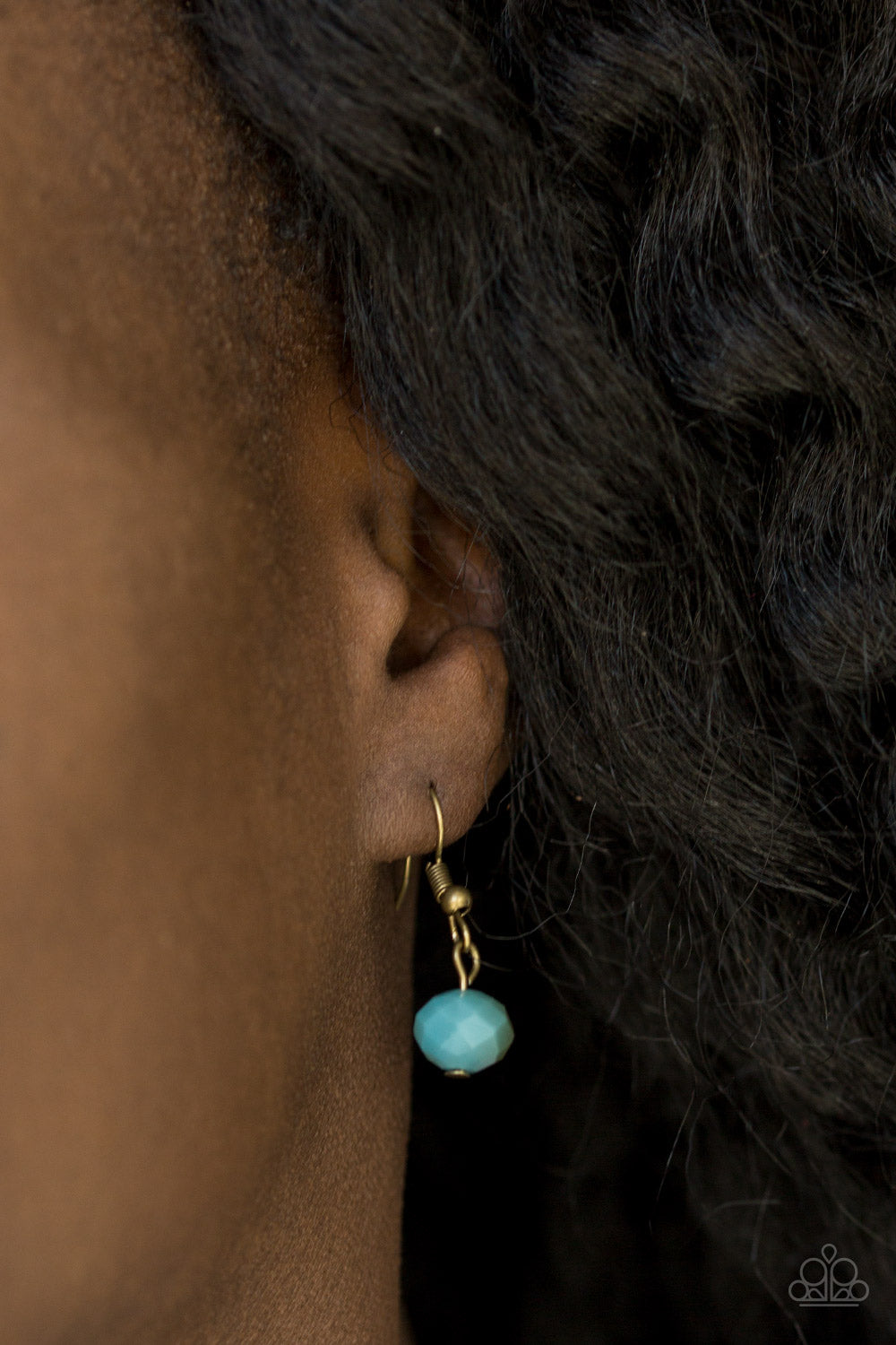 Splashed in metallic shimmer, faceted blue crystal-like beads drip from two shimmery brass chains below the collar for a glamorous look. Features an adjustable clasp closure.