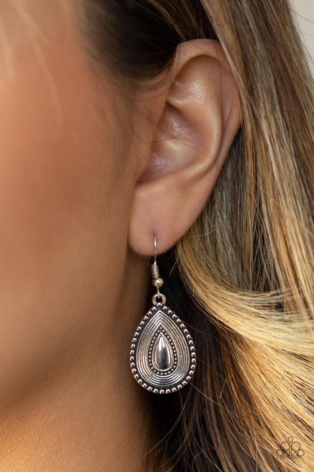 A collection of dainty yellow stone beads and ornate silver teardrop frames are threaded along an invisible wire below the collar for a fierce tribal look. Features an adjustable clasp closure.
