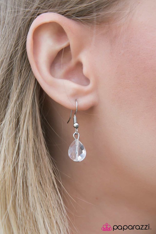 A glittery white bead swings from the uppermost chain above a sparkling white gem. The incandescent display falls just below the collar for a timeless display. Features an adjustable clasp closure. Sold as one individual necklace. Includes on pair of matching earrings.