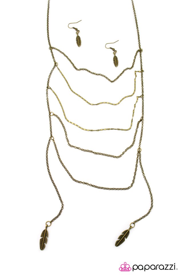 Dainty brass chains falls into a tiered display down the chest. Two tassels featuring feather charms dangle from the ends, creating a uniquely uniform display. Features an adjustable clasp closure. Sold as one individual necklace. Includes one pair of matching earrings.