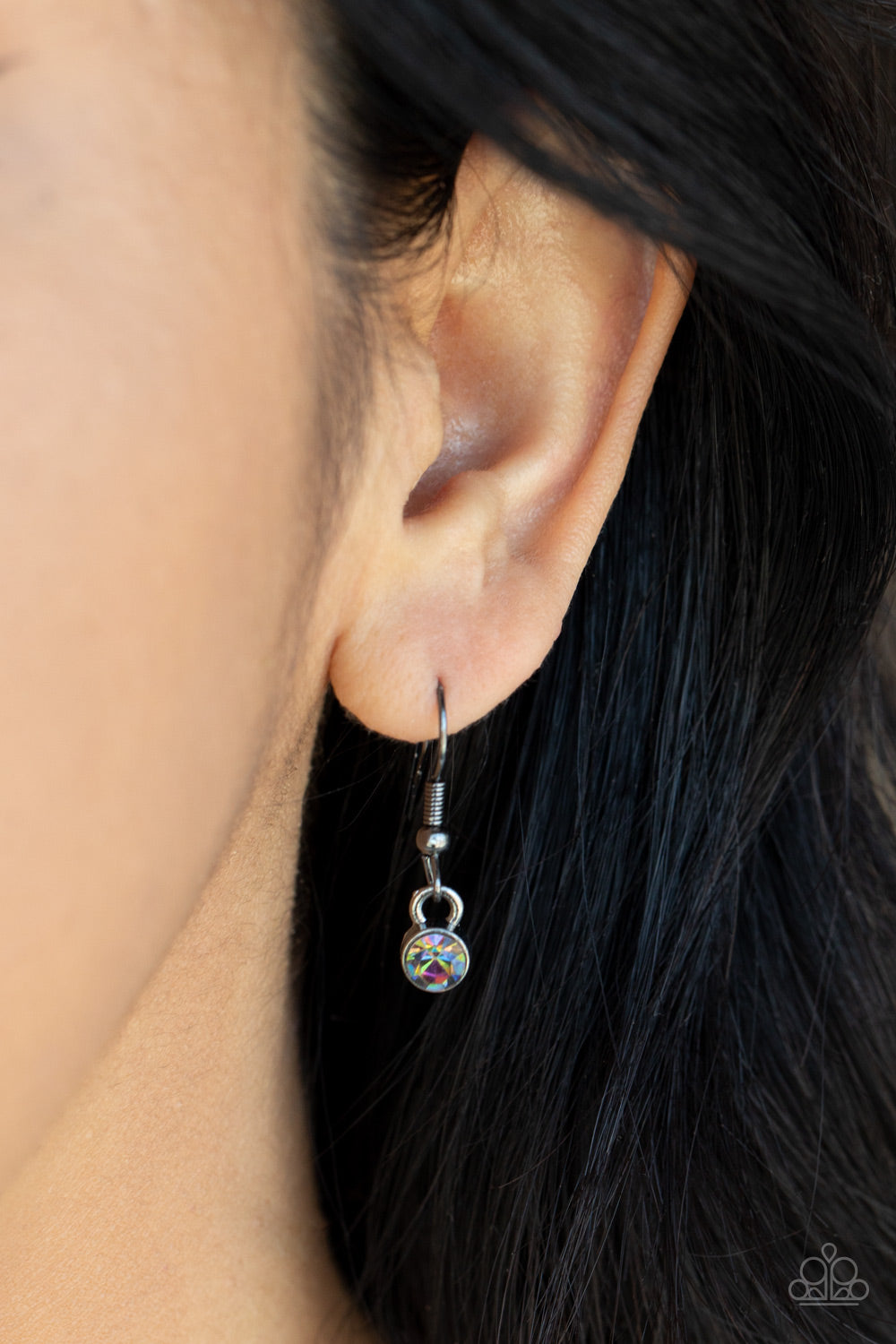 A sparkly series of glassy oil spill rhinestones gives way to an oversized oil spill rhinestone teardrop pendant at the bottom of a dainty gunmetal chain. A lobster clasp hangs from the bottom of the design to allow a name badge or other item to be attached. Features an adjustable clasp closure.