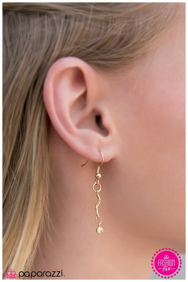 Glistening gold beads link with wavy gold bars below the collarbone in a delicate fashion, creating a minimalist inspired style. Features an adjustable clasp closure. Sold as one individual necklace. Includes one pair of matching earrings.