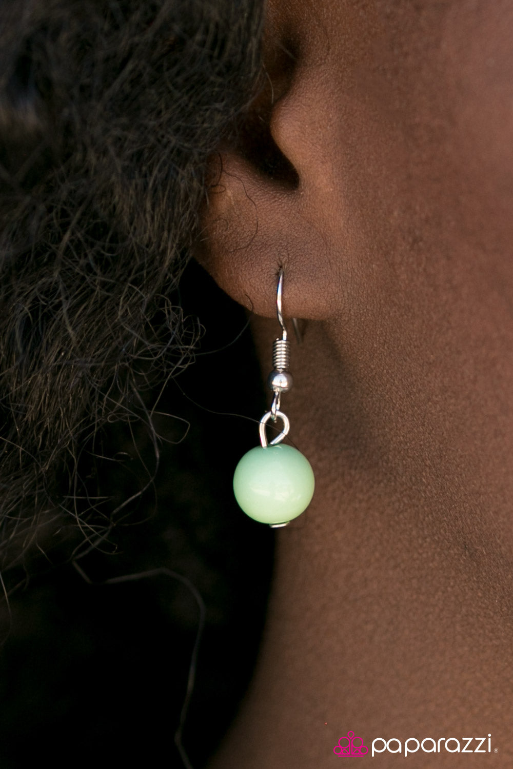 A polished green bead is pressed into the center of a frilly silver frame, creating a beautiful pop of color below the collar. Features an adjustable clasp closure.