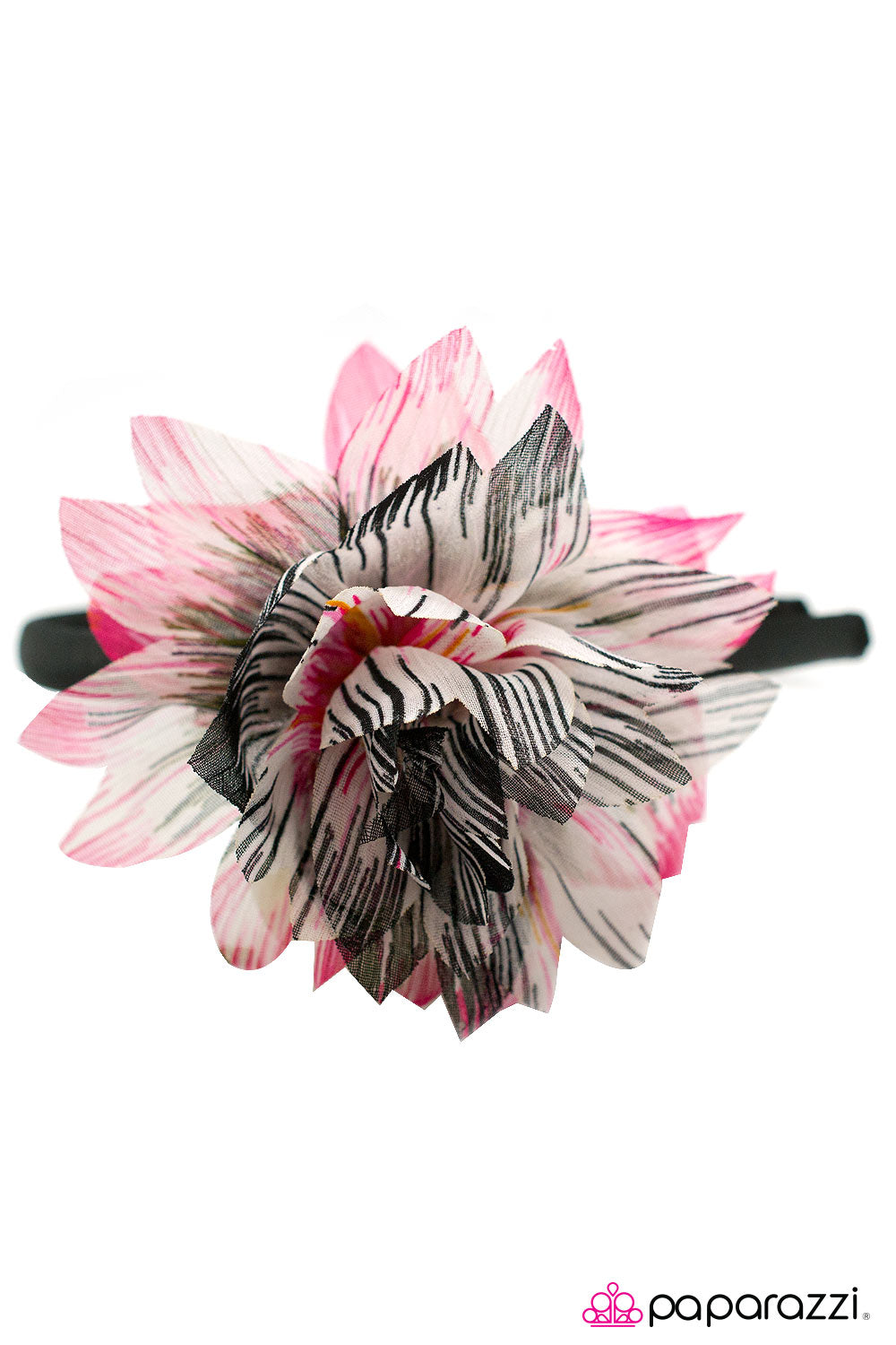 Pointed petals accented in a brushstroke pattern coalesce into a spritely flower. Infused with bright colors, the airy chiffon petals gather in the center creating an effervescent design.