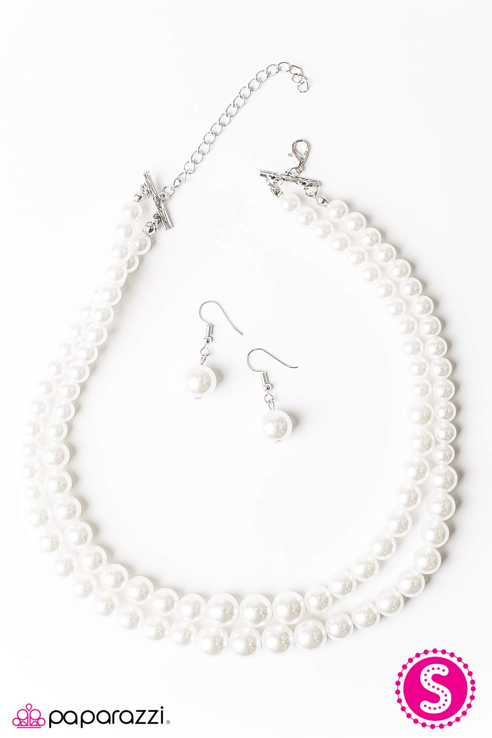 Two glistening silver beads give way to classic rows of white pearls. The timeless strands of pearls fall just below the collar in a glamorous fashion. Features an adjustable clasp closure.