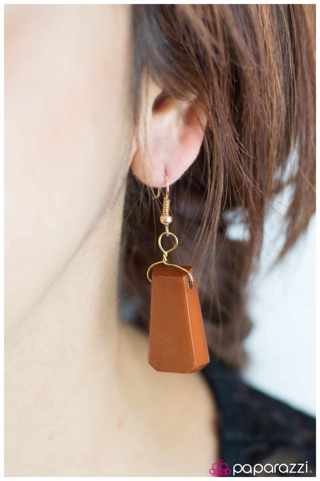 Chunky squared beads in a warm earthy shade of brown swing from long gold chains in this 70’s inspired design. Features an adjustable clasp closure. Sold as one individual necklace. Includes one pair of matching earrings.